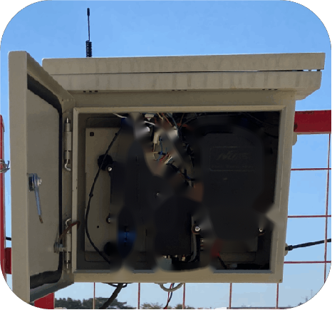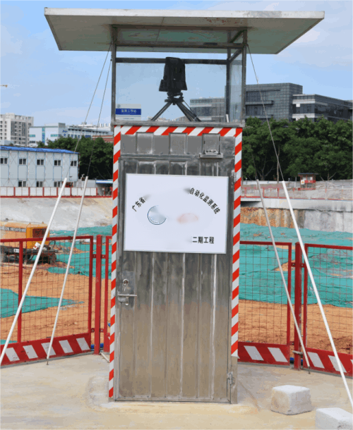 站房地下部分设在牢固的混凝土基础之上,框架为不锈钢构件,四角均有钢丝绳拉索固定兼防碰撞,房角贴有警示胶条,提醒各作业单位注意保护,站房配置有功能标识牌安装框。