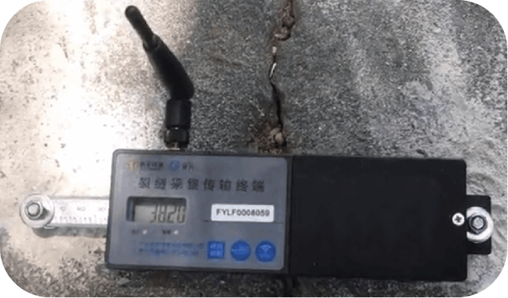 慧尺裂缝计初始观测频率为3次/1天(每8小时采集一次读数),内置6400mA锂电池,正常可工作一年,功耗非常低,电池仓独立设计,方便更换电池组;设计有液晶显示屏及读数窗,安装时在裂缝计两头用拉爆螺丝固定即可;通信使用4G网络,采集的数据实时传输到物联网平台数据库存储及展示终端,作业状态稳定可靠。